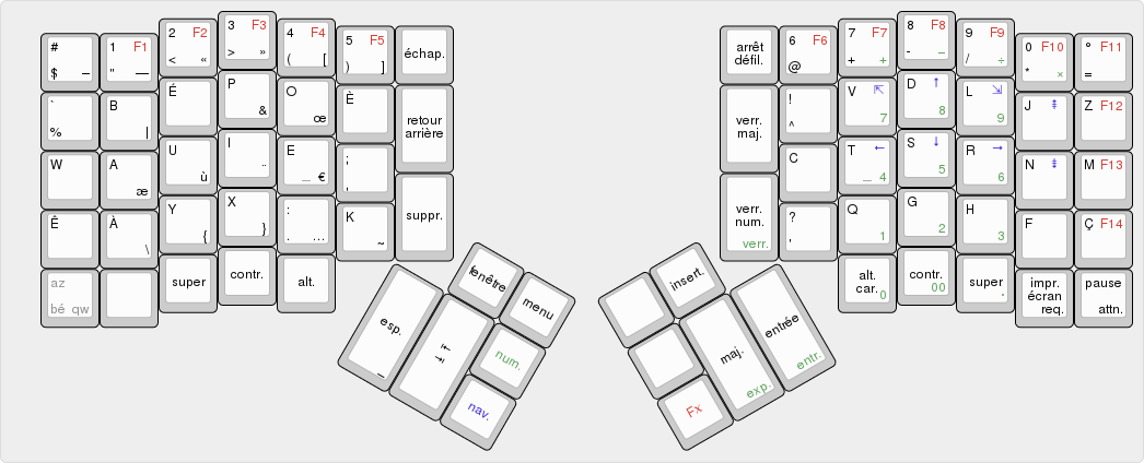 + * |   w    |   a  |   u  |   i  |   €  |   ,  |------|                                  |------|   c  |   t  |   s  |   r  |   n  |   m    |